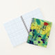On this notebook, yellow, green, and blue interplay like sunlight and water on an abstract green field for a unique writing experience!