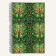 Spiral notebook with a vibrant design of stylized green trees and intricate patterns on front and back. The lush, symmetrical artwork evokes a nature-inspired, harmonious feel.