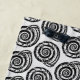 Beach towel in a block print pattern, based on a spiral seashell, in black on a white background