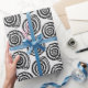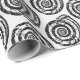 Wrapping paper in a block print pattern, based on a spiral seashell, in black on a white background