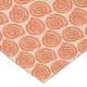 Table runner in a block print pattern, based on a spiral seashell, in deep coral orange on a pastel coral orange / apricot background