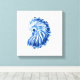 Wrapped canvas of a vintage spiral shell illustration, digitally coloured and enhanced, in deep indigo blue on a white background