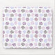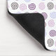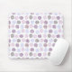 This mouse pad has an art deco design of spirals in shades of purple, light blue, and brown, on a field of white. If you want the same design with different colours, message me.
