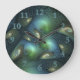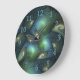 Spirals Teal Beige Green Abstract Fractal Art Large Clock