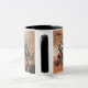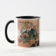 White and black 11 oz. ringer combo mug with an image, on both sides, of a vintage painting titled “Spirit of ‘76” (1891 version) by Archibald Willard.
