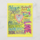 Spirit Prayer art painting features an angel within a heart as the colourful prayer words wrap around the angel heart. The background is a soft pale yellow and the words are in the multitude of colours like shades of flower petals in a spring garden. The painting was rendered in opaque watercolor/gouache on watercolor paper. This art makes for uplifting inspirational gifts!