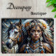 This breathtaking portrait merges fantasy and indigenous-inspired elements in a stunning display of ornamental detail and spiritual power. The composition masterfully pairs a noble steed with an adorned figure, both embellished with intricate regalia featuring turquoise, gold, and silver accents. The subject's face bears delicate blue ceremonial patterns that mirror the decorative elements of her elaborate costume, while her headdress combines sunflowers, white blooms, and feathers in a regal crown.