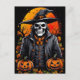 Unleash Halloween's spirit with this captivating postcard! A spirited skeleton readies itself for the spooky festivities. Clad in its eerie charm, it's the perfect embodiment of the holiday's playful fright. Share the thrill of Halloween with this bone-chilling postcard.