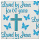 This 60 year old praises God every day of her beautiful and spirit filled life. This lovely woman has been loved by Jesus for 60 years. Enjoy this blue cross and butterfly 60 year design on Tees, Mugs, Tote Bags and Gifts. Your awe inspiring 60 year old will adore this unique and one of a kind 60th customized birthday gift that she will treasure every year. Celebrate turning 60 with a beautiful 60th birthday prayer. Give the gift of an original 60th birthday design to rejoice in turning 60.