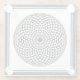 Serve your drinks on these glass coasters with a liberal attempt of a geometric mandala. A mandala is a spiritual symbol used both in Hinduism and Buddhism. Usually is employed to focus attention of the one who mediates. The background is white with a dark grey border.