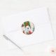 Spitz Dog Christmas sitting outside decorated home with Christmas wreath, Christmas tree is a perfect Christmas gift idea for dog lovers.