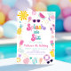 This girl birthday invitation features adorable colourful summer illustrations with faux gold foil accents.