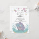 A sweet and playful illustration of a smiling baby hippo splashing gently in the water, surrounded by soft plants and bubbles. With pastel colors and a warm, cheerful expression, this image represents innocence, happiness, and the joyful arrival of a precious little one—perfect for celebrating a baby shower full of love and smiles.