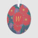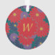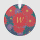 Large scarlet red, medium navy blue, and small royal purple daisy-like flowers are scattered across a rich jungle green background to create a colourful floral pattern that is perfect even for autumn. Customize the monogram on this ornament with your initial to make it your own.