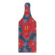 Large scarlet red, medium navy blue, and small royal purple daisy-like flowers are scattered across a rich jungle green background to create a colourful floral pattern that is perfect even for autumn. Customize the monogram on this cutting board with your initial to make it uniquely your own.