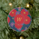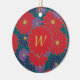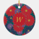Large scarlet red, medium navy blue, and small royal purple daisy-like flowers are scattered across a rich jungle green background to create a colourful floral pattern that is perfect even for autumn. Customize the monogram on this ornament with your initial to make it uniquely your own.