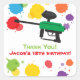 Thank you stickers to decorate gift bags and favours for that kids paintball birthday party! It has the kids version of the paintball gun in green and black with colourful splats of paint for background. Personalise easily with your thank you message.