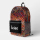 Lightweight and durable, our custom all-over-print Backpack is just what you need. The spacious interior is ideal for travel, school, gym, or any mobile storage need. Bring your stuff with you in style! Features Adjustable padded shoulder straps, two chambers on the inside for laptop storage, mesh side pockets and an identification label.
