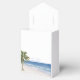 Adorable baby shower design featuring a sweet nautical clothesline with baby shorts, a bib, and a life preserver in soft blue watercolor tones. The tropical palm tree, sandy beach, and ocean waves create a breezy coastal feel, while the light blue palette adds a fresh and charming touch for a baby boy celebration. This design is perfect for beach, coastal, tropical, seaside, summer, and nautical baby shower themes, using broader search-friendly keywords to help reach a wider audience.