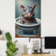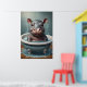 De mignons animaux adorables assis dans une baignoire, avec des gouttelettes d'eau et des bulles autour. L'image de l'oeuvre d'art regarde le spectateur avec de grands yeux innocents, et ses petits pieds reposent sur le bord de la baignoire. L'atmosphère générale est mignonne et humoristique, ce qui en fait l'endroit idéal pour un jeu d'affiches. Personnalisez votre affiche pour que vous puissiez vous amuser et rire dans votre maison ou votre espace de travail.