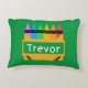 Bold and colourful personalized accent pillow for kids is great for bedrooms, playrooms and homeschooling areas.  Design features a split crayon box with room to personalize with child's name in centre,  on green background.