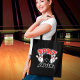 Totally thrilled with this bag. The material is thick and durable (this is my third purchase of this tote bag). The printing turned out amazing. The bright red was just as bright as it is on the computer. So impressed with this bag.