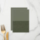 Give your tables the quiet confidence of a forest at dusk. This flat menu comes pre-styled with a dramatic horizon line: the upper field is a smooth, sage-moss wash that keeps text ultra-readable, while the lower panel adds a refined “noise” sparkle that glints like moonlight on stone—no clip-art borders or fussy florals required. Open Zazzle’s live editor and paste in five-course line-ups, farm-to-bar cocktail pairings, sponsor logos, QR codes, allergen icons, campus crests, scripture verses, or guest names in seconds—zero software, zero learning curve. Because every sheet prints on demand, you can proof a single card for a styled shoot or drop fifty thousand units for corporate summits, university banquets, eco-forward weddings, mitzvah dinners, quinceañeras, milestone birthdays, product launches, holiday feasts, or church fund-raisers without tying up cash in leftover stock. Need to swap languages, add late-breaking vegan notes, or personalize each guest? Duplicate the template, hit print, and order exactly what you need today—no setup fees, no coupon gymnastics. Edge-to-edge colour on premium stocks—from velvety Matte to ultra-lux Felt—keeps hues rich, while archival inks laugh at UV fade. The gender-neutral palette syncs perfectly with sustainability messaging, rustic linens, marble chargers, or gold flatware, giving wholesalers and stationers a high-margin hero that ships worldwide on lightning turnaround. In short: bold colour, limitless customization, wholesale scalability—ready to make every seat feel like the best seat in the house.