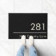 Just picture the sweet feeling of entering the house you now own and having something to make you think that this house is really yours. This doormat comes in handy to symbolize the beginning of the new chapter in people’s life. This doormat is perfect for welcoming people in to a new house, a new beginning or the coming together of two families. Looking simple and modern, this black custom doormat is split and has the house number as well as the street name or family name. Order yours today and add that special touch to your doorstep!