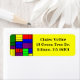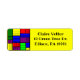 These return address labels have a Bauhaus design of rectangles divided into ever smaller pieces in red, yellow, blue, green, purple on a field of black.