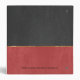 Simple, elegant dark-grey and red faux leather texture split-screen geometric design with a thin shiny gold stripe image.