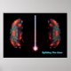 A fractal representation of an atomic nucleus being split by a high-energy particle. Text reading, "Splitting The Atom" appears in glowing blue and white.