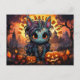 Spoky Halloween Unicorn in Pumpkin Patch Holiday Postcard