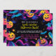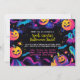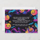 The back of the invitation features the same deep black background with a continuation of the colourful rainbows and sparkling stars. There is ample space for RSVP details or any additional information, maintaining the magical and vibrant theme throughout the invitation. This design blends Halloween fun with a touch of enchantment, making it perfect for a memorable children's Halloween party.