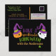Have a Spooktacular Halloween with Personalized Postcard Invites- Modern Halloween Décor with a fun Cute Ghost & Jack-o-lantern witch hat design. With fun modern hand-lettered fonts in Purple, green, and Orange. Happy Halloween!