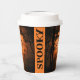 These paper cups feature an eerie looking full moon sky, complete with barren trees and bats flying about on both sides. The word SPOOKY is on either side of the cup in a vertical display. They coordinate with the entire set of Spooktacular Halloween Costume Party Invitations and party supplies in our shop.