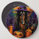 Spooky Afghan Hound Halloween Witch and Pumpkin 6 Inch Round Button