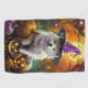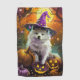 Embrace the Halloween spirit with this enchanting design featuring a cute dog in a witch hat surrounded by carved pumpkins. Perfect for adding a touch of spooky charm to your festive celebrations.