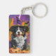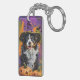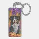 Spooky Australian Shepherd Halloween Witch Pumpkin Keychain