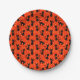 Spooky Black Cat Halloween Orange Bats Paper Plate
