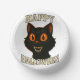 Serve your favourite treats in spooky style with these Halloween party paper bowls! Featuring a mischievous black cat with glowing orange eyes, sharp fangs, and a big grin, this retro-vintage design is accented by playful pumpkins, ghosts, and bold “Happy Halloween” lettering. Perfect for candy, popcorn, chips, or party snacks, these sturdy bowls add both creepy charm and festive fun to your table. A must-have for Halloween lovers and cat enthusiasts, they make every serving a spooktacular delight at haunted gatherings, trick-or-treat parties, or family celebrations.