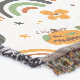 This whimsical and spooky-sweet design combines classic Halloween imagery with a modern, bohemian twist. Featuring a seamless pattern of smiling, jagged-toothed jack-o'-lanterns and mysterious, multi-eyed pumpkins, this artwork is perfect for adding a touch of festive fun to any product. Playful ghosts, swirling tendrils, and scattered stars float alongside earthy, retro rainbows, creating a unique and eye-catching aesthetic. The colour palette of burnt orange, olive green, and deep black on a clean white background makes it versatile for a variety of products, from home decor to apparel and party supplies. It's the ideal design for anyone who loves a blend of spooky charm and stylish, contemporary art.