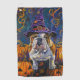 Spooky Bulldog Halloween Witch And Pumpkin Golf Towel