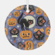 Spooky Cats Pumpkins Purple Pattern Glass Ornament