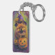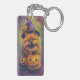 Spooky Chow Chow Dog Halloween Witch And Pumpkin Keychain