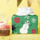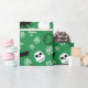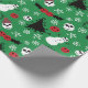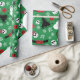 This pattern offers up a goth style spin on traditional Christmas motifs with snowflakes and star shapes formed out of white skeleton bones, skull shaped Christmas ornaments and holly berries, black spooky Christmas wreaths and trees and ghoulish ornaments and snowmen. My illustrations in white, black, grey and red are set against a festive green background. So this wrapping paper definitely has a festive Christmasy look even if the spooky graphics look a little bit more Halloween.