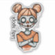 This is a cute Halloween sticker that features a cute, spooky clown girl. You can customize the default text "too cute to spook".