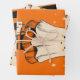 Spooky Cute Ghost Burnt Orange& Black Halloween Wrapping Paper Sheet