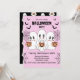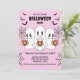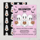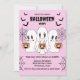 Spooky Cute Kawaii Cartoon Ghosts with bats and webs on light pink background Halloween Party Invitation