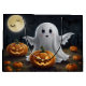Bring a friendly ghost to your Halloween decor with this delightful design, featuring a smiling ghost among jack-o'-lanterns under a full moon. Perfect for Halloween party decorations, this design adds a playful touch to any autumn celebration. Create your own unique Halloween products with this design on Zazzle today and make your Halloween season unforgettable!