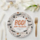 Celebrate Halloween in style with these fun and festive party plates! Featuring a playful design with a black cat, bat, ghost, pumpkin, spider, ‘boo’ and autumn fall leaves, they’re perfect for a family Halloween party or kids’ spooky birthday. Personalize with your family or child’s name and year for a unique touch that makes your table extra special.